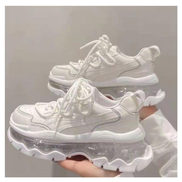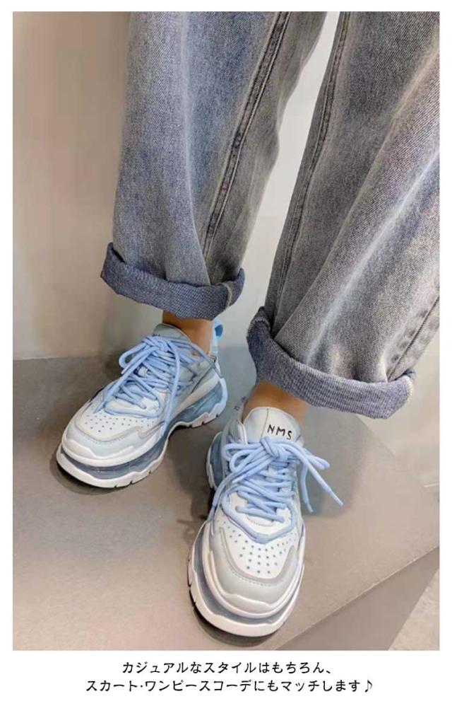 | シンプルでもこっとしたスタイルが可愛いダッドスニーカー ソールが分厚く、脚長効果も期待できます。 インソール、アウトソールともに衝撃吸収性に優れており、履き心地も良好。 爽やかなデザイン、これからの季節に大活躍する。 カジュアルなスタイルはもちろん、スカート?ワンピースコーデにもマッチします♪ | |
