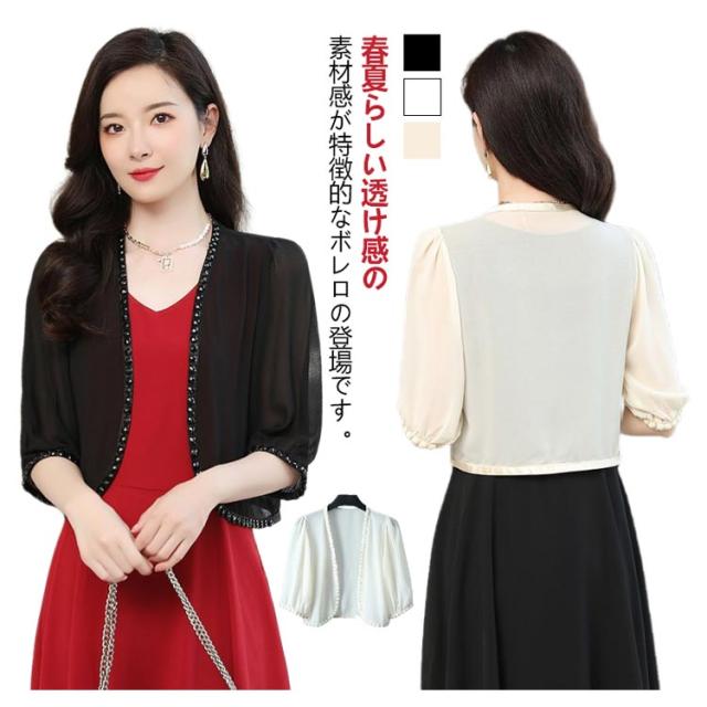 レディース 結婚式 カーディガン 4XL 結婚式 フォーマル ショート丈 トップス 羽織り ミニボレロ 薄手 フォーマル サマーカーディガン 透け感 成人式 半袖 パーティー 二次会 謝恩会 羽織り シフォン お呼ばれ 春 夏 ボレロ L XL 2XL 3XL M