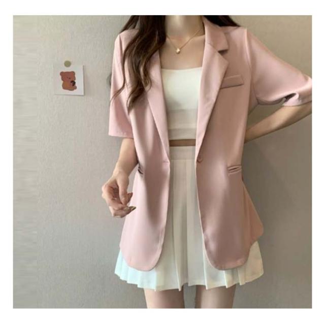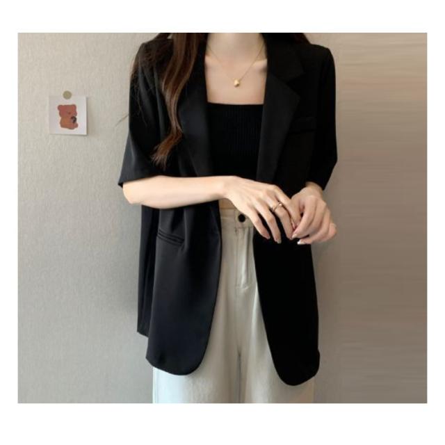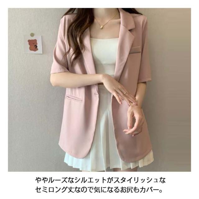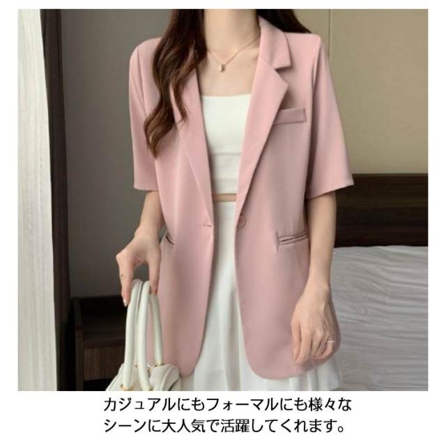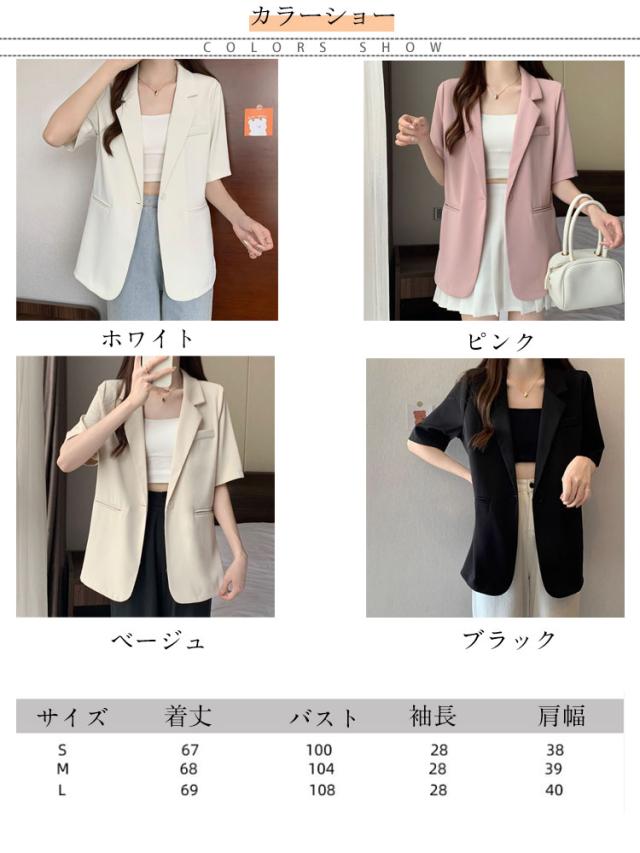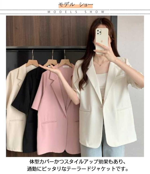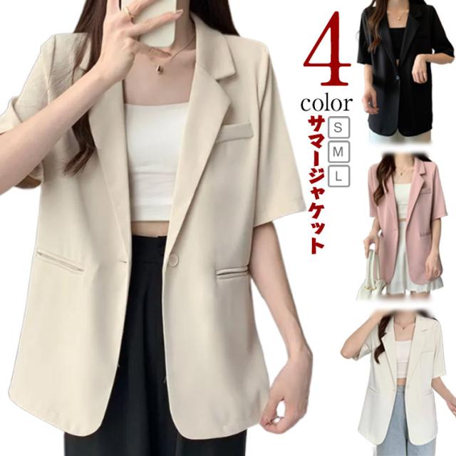 半袖 カジュアル ジャケット サマースーツ アウター レディース ライトアウター 薄手 スーツ 夏 体型カバー オフィスカジュアル ビジネス シンプル サマージャケット テーラードジャケット 無地 フォーマル