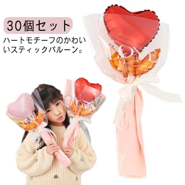 30個セット 手持ちバルーン ハートバルーン 花束 飾り付け パステルカラー 推し活 卒業バルーン バルーンブーケ スティックバルーン ハート 写真撮影 誕生日 風船 バルーンガーランド ガーランド 風船 フィルム風船 フォトドロップス
