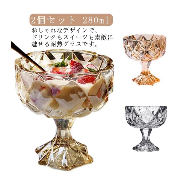 アイス デザート ガラス 2個セット デザートカップ デザートグラス 脚付き デザート ボデガカップ ボデガグラス レトロ コップ カキ氷 280ml 浅型 食器 丈夫 硝子 耐熱 ガラス食器 ドリンクカップ カップ