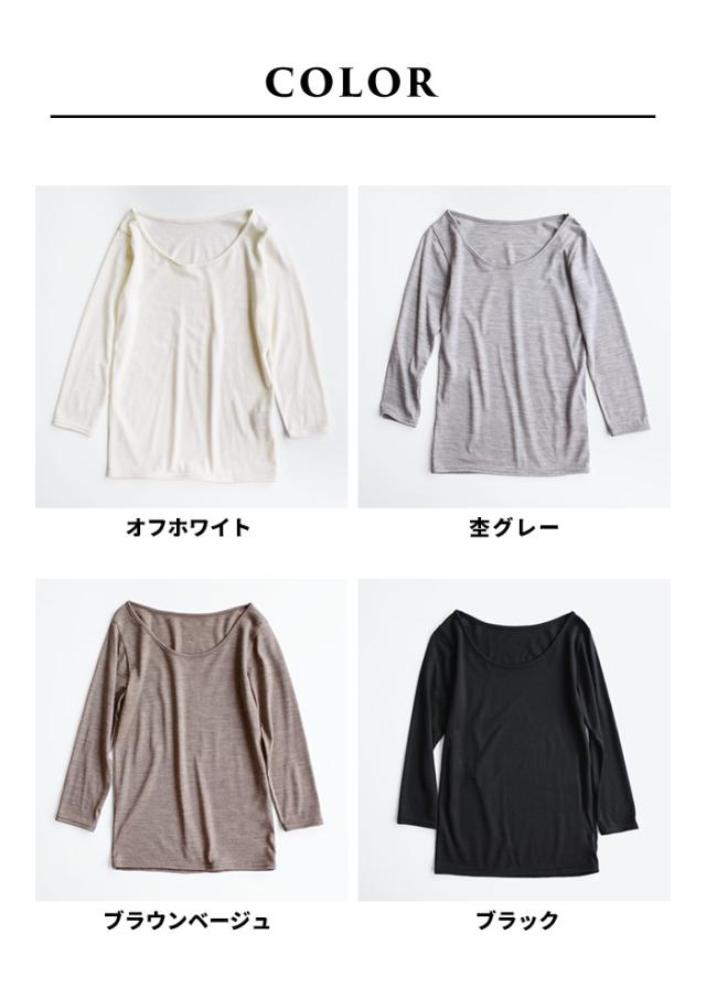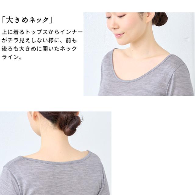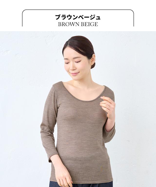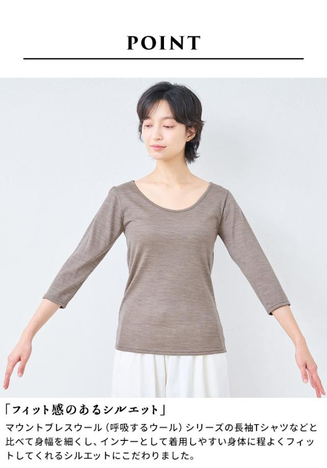 メリノウール インナー レディース 襟ぐり 広め 登山 ウール100% 七分袖 インナーシャツ 襟 広め 日本製 ウォッシャブルウール 毛100 洗えるウール 肌着 アンダーウェア マウントブレスウール 防寒 冷え防止 抗菌 防臭 大きいサイズ 春 秋 冬