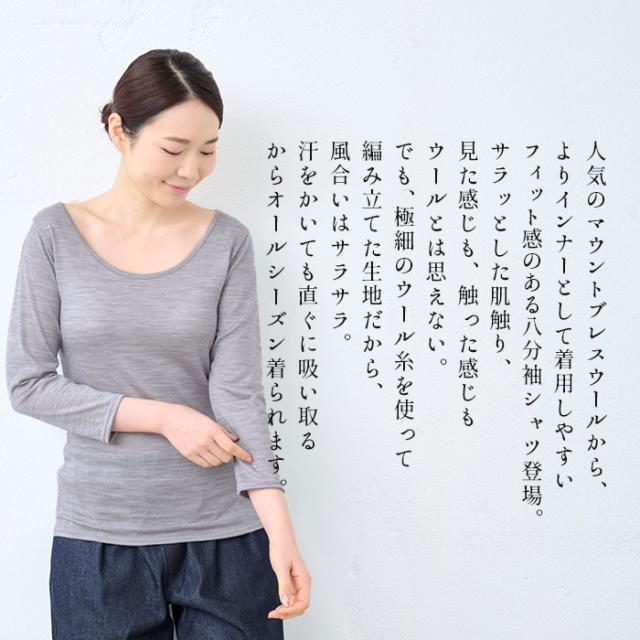 呼吸する ウール100% 七分袖 インナーシャツ 日本製 / メリノウール インナー レディース 登山 ウォッシャブルウール 毛100 洗えるウール 肌着 アンダーウェア マウントブレスウール 防寒 冷え防止 抗菌 防臭 大きいサイズ 春 秋 冬