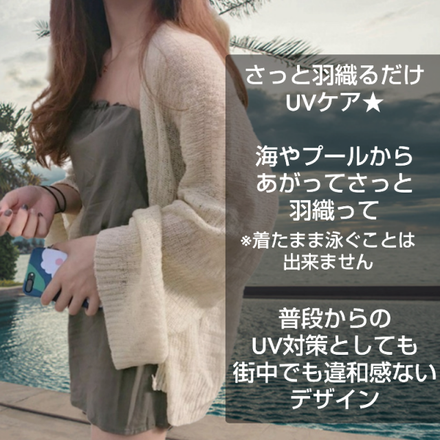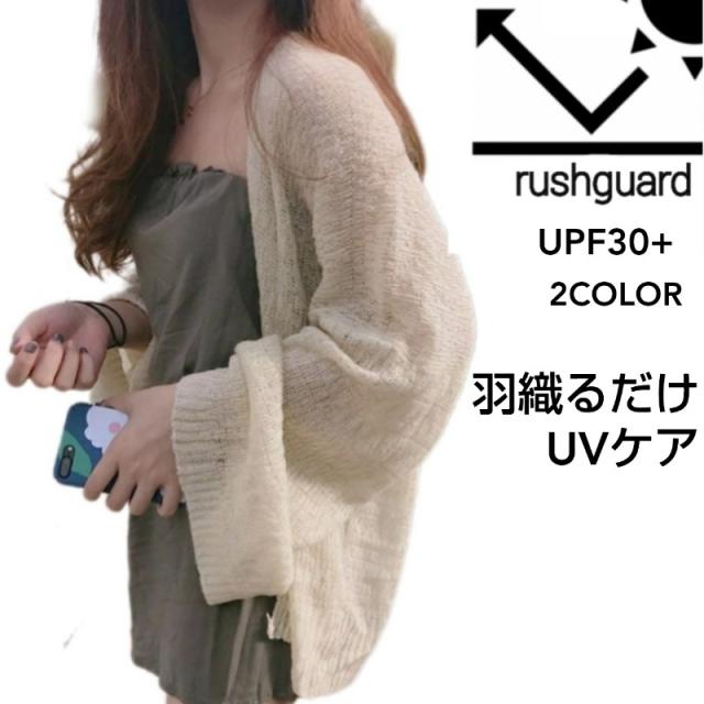 日焼け防止 カーディガン レディース 着る日焼け止め UFP 30 UVカット uv ポンチョ ラッシュガード カーデ 紫外線 日除け 長袖 羽織り 大きいサイズ ゆったり 春 夏 秋 冬 サマー カーディガン 薄手 サマーニット きれいめ 体型カバー ホワイト カーキ 送料無料