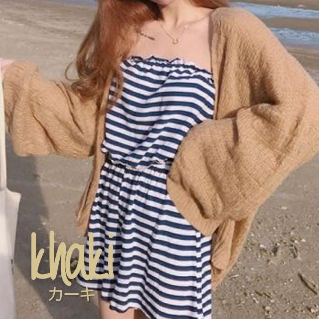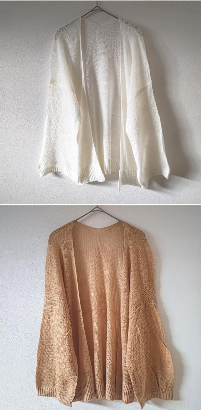 - 思ったよりニットっぽい素材で見た目より暑い。ボタンもなく羽織るだけなので使い勝手もあまり良くない。