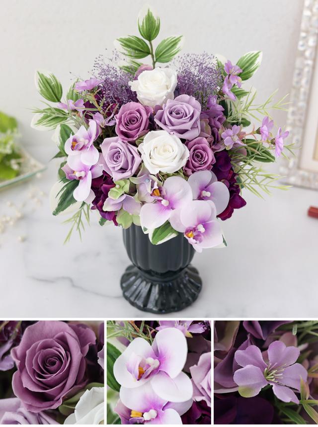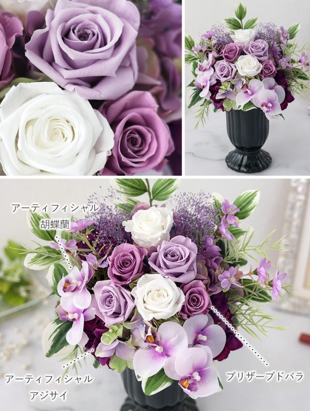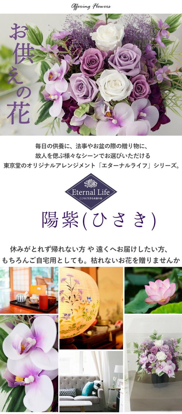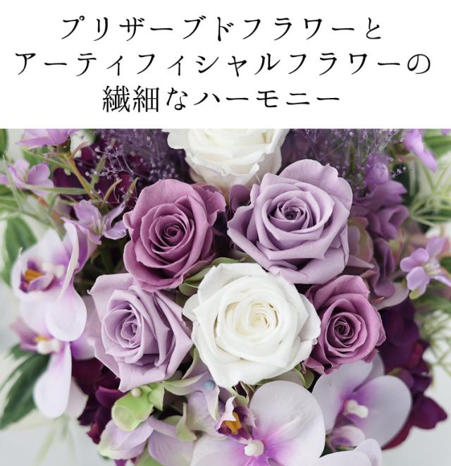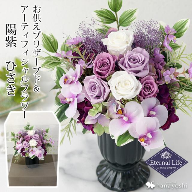 送料無料 お供え 仏花 プリザーブドフラワー&アーティフィシャルフラワー Eternal Life 陽紫 ひさき 仏壇 お供え用アレンジメント お悔やみ 花 贈り物 ブリザードフラワー 喪中見舞い お供え花 ギフト 法事 お供え物 一周忌 造花 喪中 お見舞い 年賀欠礼 年末