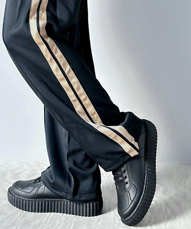 厚底ソールが脚長効果を発揮し、さりげなくスタイルUP。
