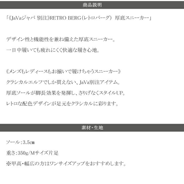 クラシカルエルフ秋新作 javaジャバ 別注 靴 スニーカー レディース RETRO BERG レトロバーグ 厚底スニーカー 男女兼用 ユニセックス メンズ 疲れにくい スポーツ アウトドア 大きいサイズ 2024ss jv1129011