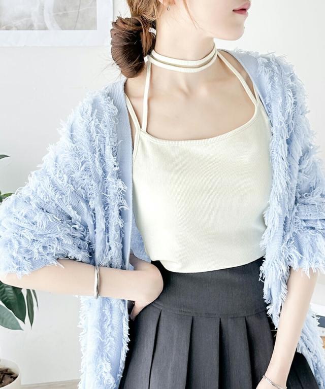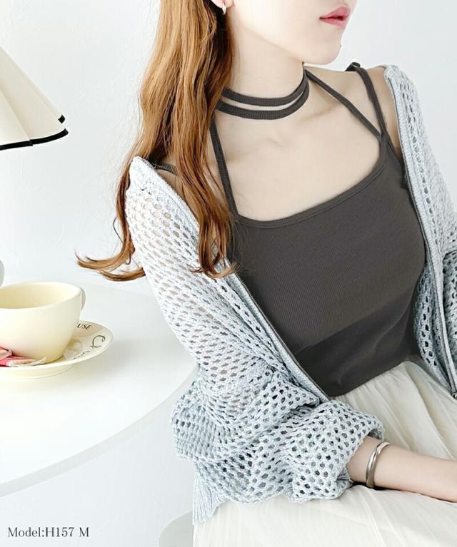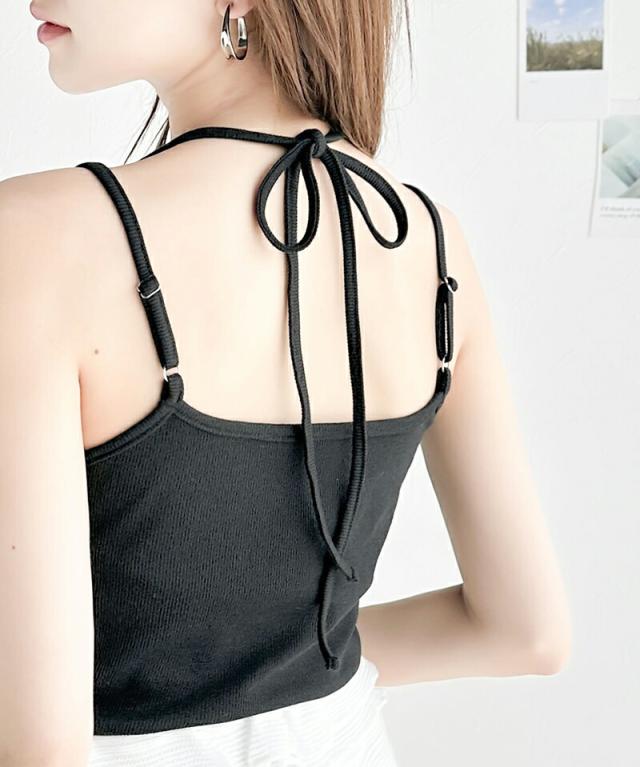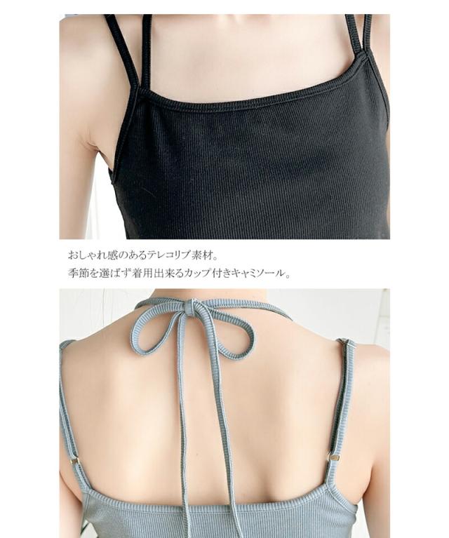 クラシカルエルフ冬新作 mily bilet トップス キャミソール レディース チョーカー リボン 使い カップ 付き キャミ レイヤードコーデ テレコリブ素材 肩紐 アジャスター 調節 可能 大きいサイズ 2024ss mi1019045