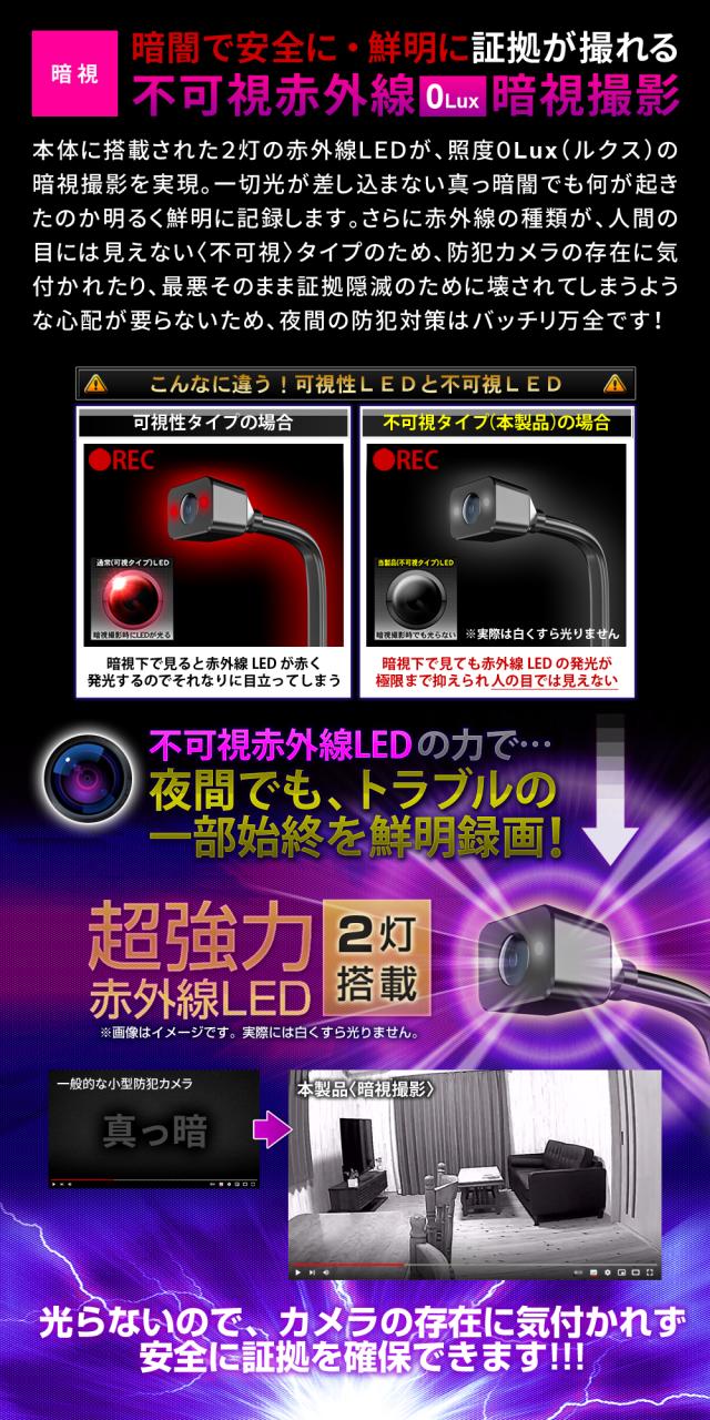 ・不可視 赤外線LED暗視撮影機能