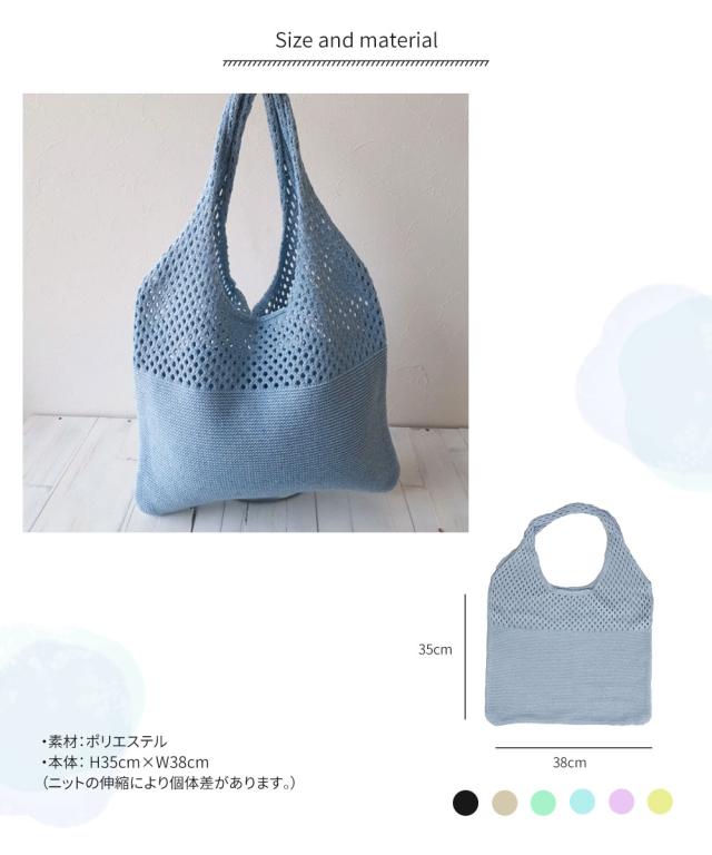 トートバッグ レディース 軽量 コードニット エコバック 大きめ カジュアル 女性 レディースバッグ サマーニット マルシェバッグ かばん シンプル おしゃれ 韓国 くすみ ニュアンス カラー 夏 ニットショルダー GBMV-V285