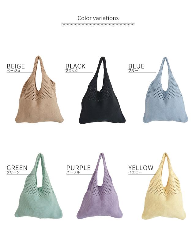 このバッグは、通気性が良く軽量なニット素材を使用しており、日常のお出かけからビーチやピクニックまで、さまざまなシーンで活躍します。