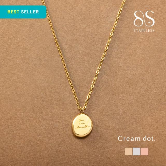 手書き風メッセージロゴが入ったコインネックレス。ニュアンスのある形と使い勝手の良いサイジングで大人っぽい雰囲気に。コインにはヘアライン加工が施されていて、ほど良く重みもあり高見えするデザインです。主張しすぎないからお手持ちのネックレスとの重ねづけにも活躍しそう◎錆びにくく傷に強いステンレス製です。