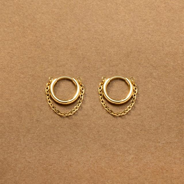 【ゆうパケット送料無料】ステンレス製 ピアス フープピアス 金属アレルギー つけっぱなし サージカルステンレス レディース チェーン 2連 二重 揺れる 中折れ キャッチレス 開閉式 大人 華奢 ゴールド シルバー