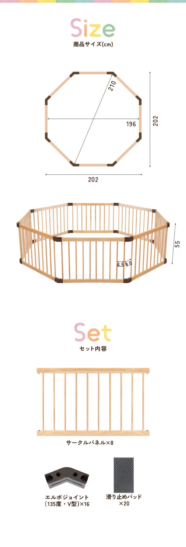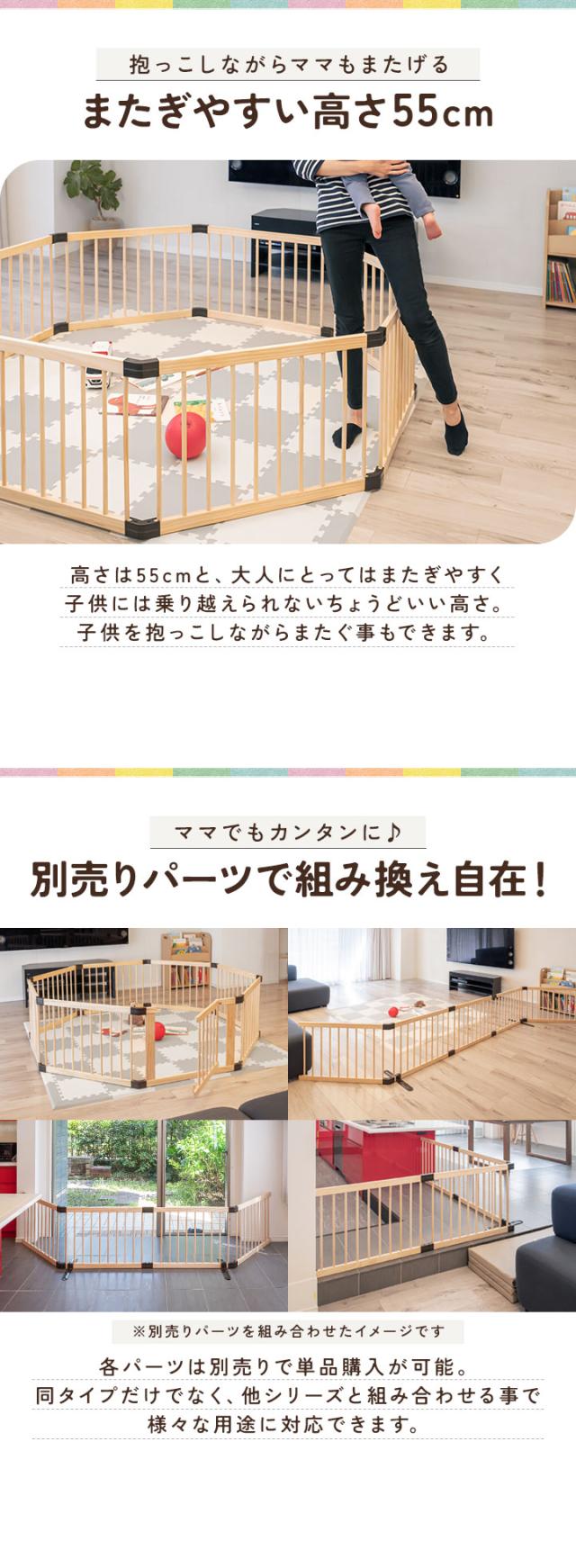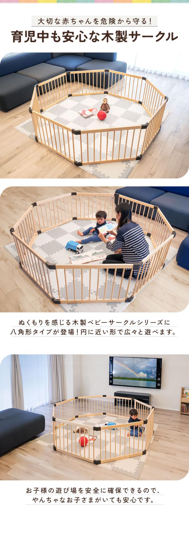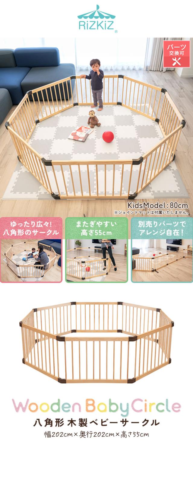 RiZKiZ 木製 ベビーサークル 八角形 幅約200cm×高さ55cm パネル 8枚 幅80cm 天然木 ベビーフェンス ベビーゲート キッズサークル プレイペン 柵 フェンス 組立て簡単 赤ちゃん ベビー お昼寝 安全 グッズ セーフティーグッズ 送料無料