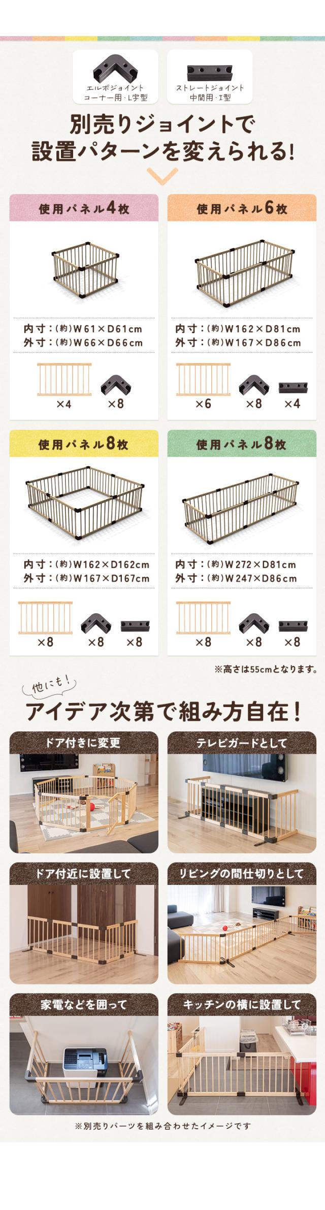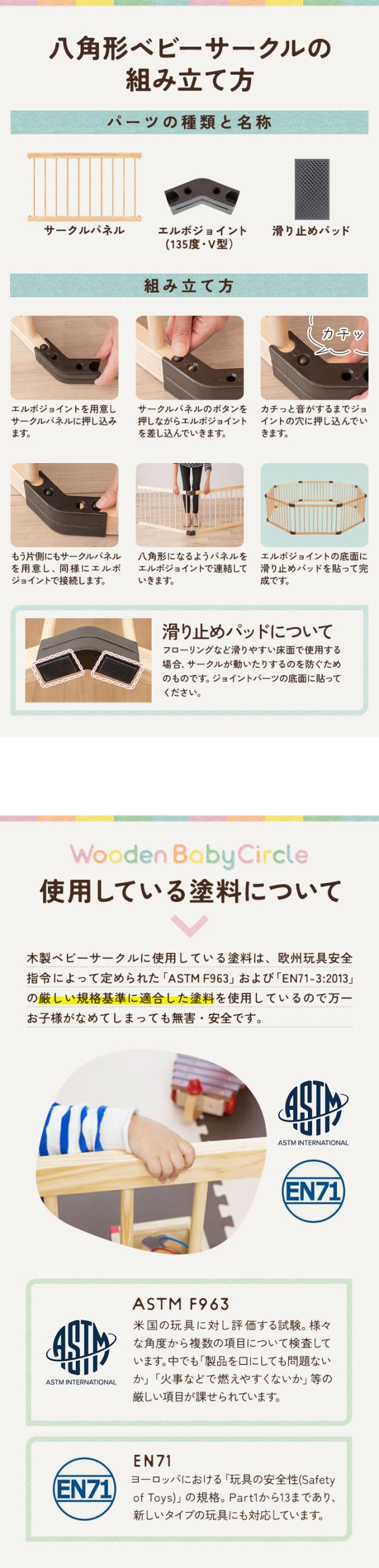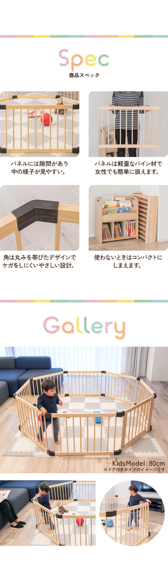 RiZKiZ 木製 ベビーサークル 八角形 幅約200cm×高さ55cm パネル 8枚 幅80cm 天然木 ベビーフェンス ベビーゲート キッズサークル プレイペン 柵 フェンス 組立て簡単 赤ちゃん ベビー お昼寝 安全 グッズ セーフティーグッズ 送料無料