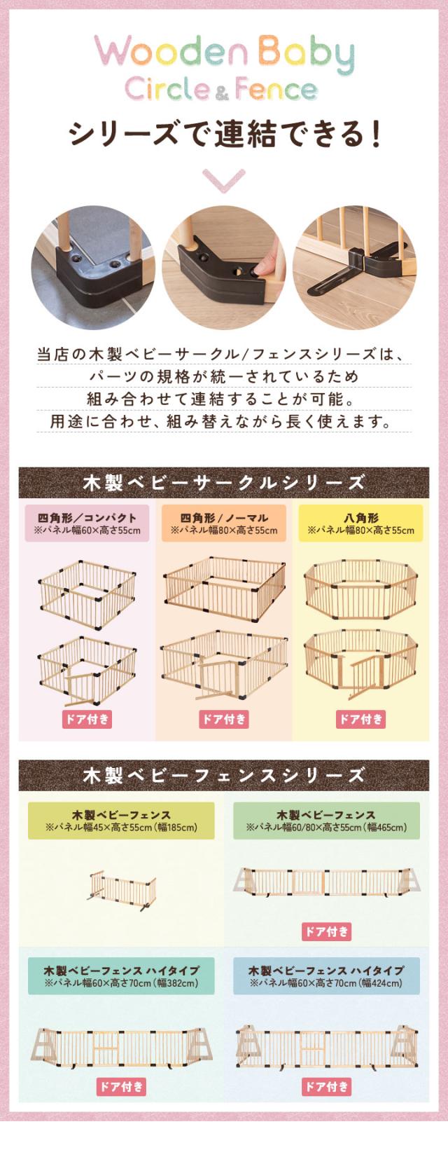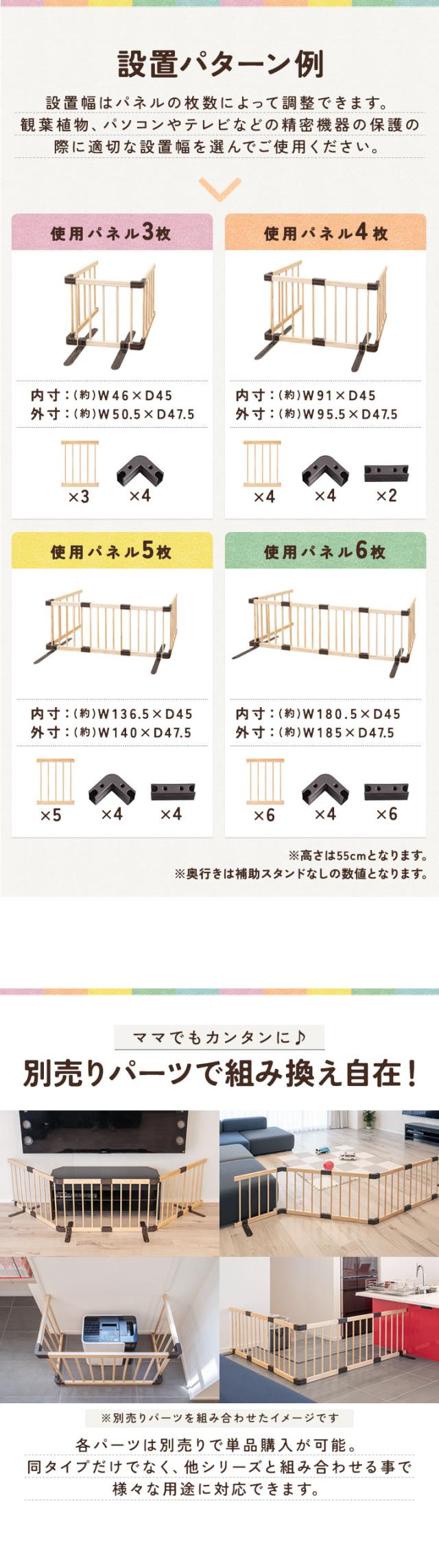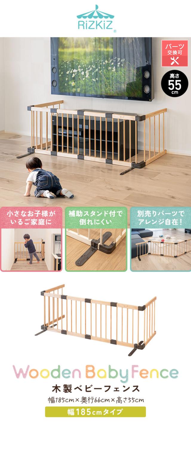 RiZKiZ ベビーフェンス 木製 置くだけ 幅185cm×高さ55cm 最大幅270cm パネル 6枚 幅約45cm 自立スタンド付き 組立簡単 組み替え テレビ 階段 キッチン ベビーゲート ベビーサークル プレイヤード 柵 赤ちゃん 安全 倒れにくい 1年保証 送料無料