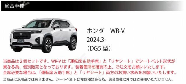 2024.3月発売のホンダ WR-V(DG5型)の後席2箇所に装着可能です。