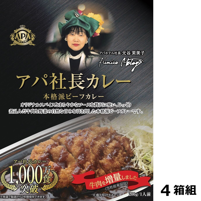 アパ社長カレー(牛肉増量リニューアル版)4箱組(レトルト食品 4食分 簡単調理 レトルト食品 グルメ アパホテル社長元谷芙美子)