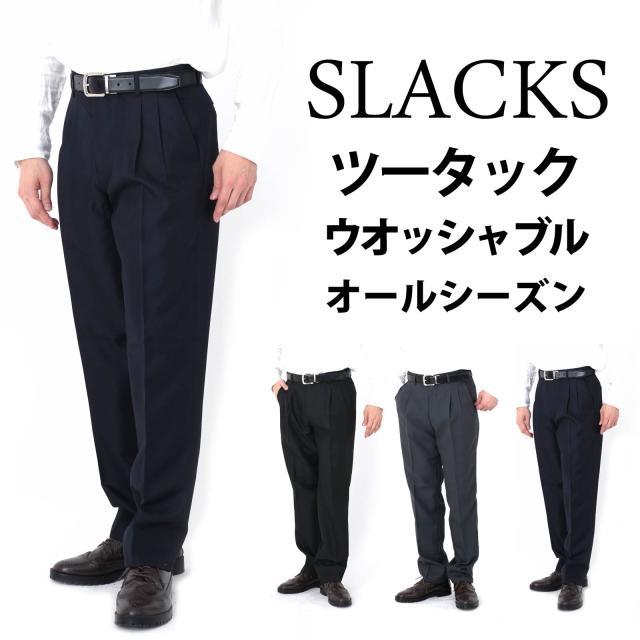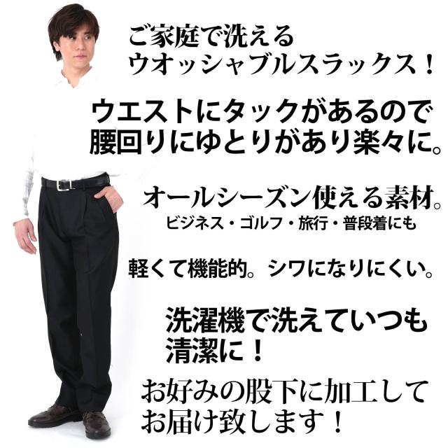 スラックス ツータック ビジネスパンツ 大きいサイズ キングサイズ ウォッシャブル 家庭洗濯 通年仕様 春夏 秋冬ブラック ネイビー グレー 裾上げ対応 送料無料