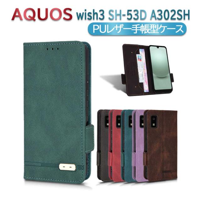 アクオス AQUOS wish3 SH-53D A302SH スマホケース 手帳型 ベルト PUレザー マグネット 傷防止 良い手触り カード収納 アクオスウィッシュ3