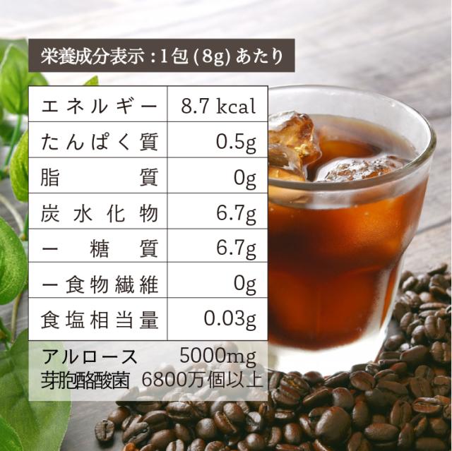 ■原材料:アルロース(メキシコ)、インスタント珈琲、芽胞酪酸菌(一部に乳成分、大豆を含む)