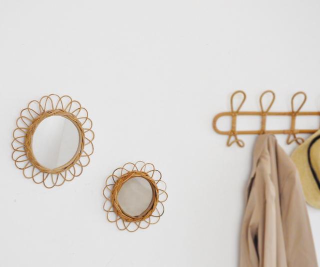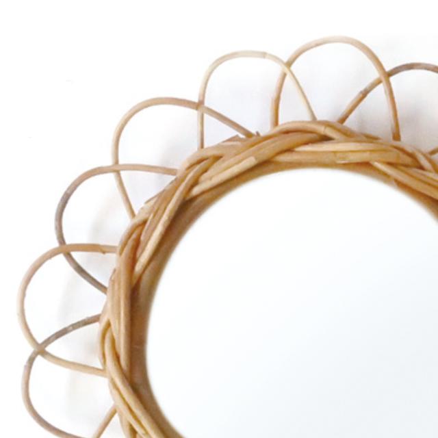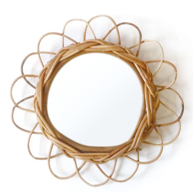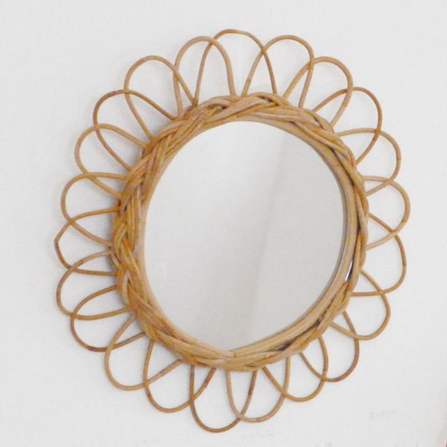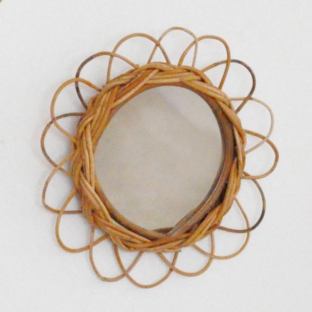 ●ヨーロッパのアンティークデザインを思わせる風合い豊かなラタン製のフラワーミラーSサイズです。
