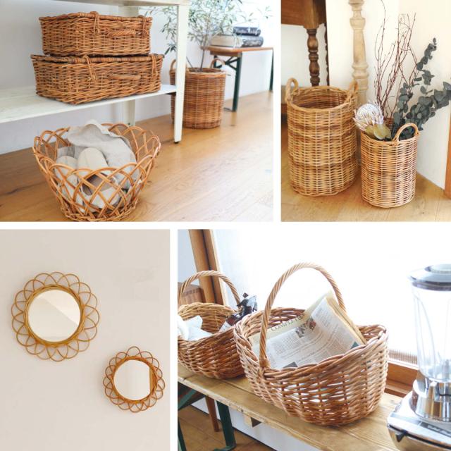 こちらの商品は天然素材を使用し、一点一点丁寧に手作りしています。そのため、素材の色の違い、黒い斑点やささくれ、表皮のはがれ等が生じる場合がございます。これらは不良ではなく、天然素材特有の風合いによるものですので、ラタン製品の味わいとしてお楽しみ下さい。
