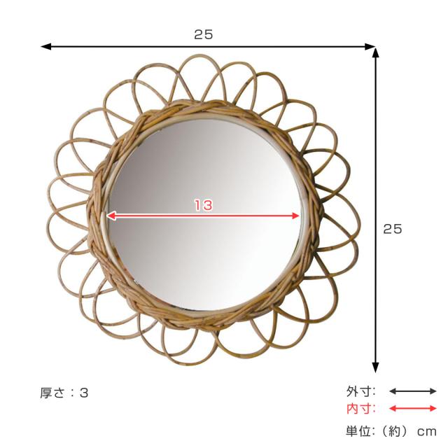 ウォールミラー Sサイズ 直径25cm アラログフラワーミラー ( 壁掛 ミラー 鏡 丸 ラタン アンティーク調 ナチュラル 北欧風 )