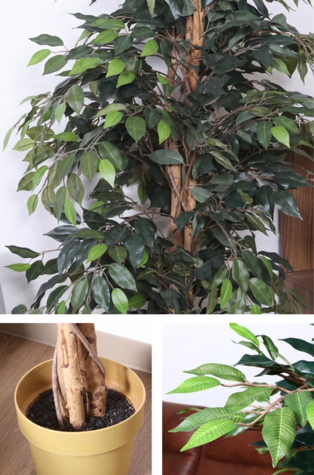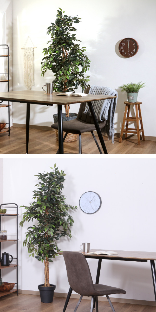 金運・家庭運に良いとされる丸い葉が特徴の、フィカスのフェイクグリーンです。本物そっくりの精密さで、インテリアに木の温もりを与えます。