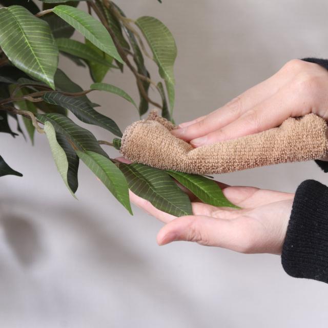 しっかりとしたボリュームで存在感があり、チープさを感じません。また鉢の中はセメントで土が表現されており、細部までリアルな植物を感じられます。葉の形や艶、幹のざらつき具合も本物そっくりです。