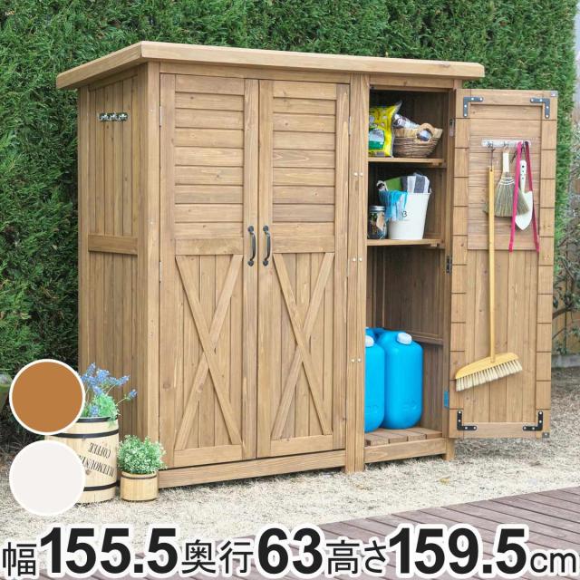 物置 木製 大型収納庫 三つ扉 ( 屋外 屋外物置 約 幅 155 cm 木製物置 ベランダ 物置き 屋外収納 収納 ラック おしゃれ 収納棚 天然木 ガーデン ガレージ 庭用品 マグネット扉 ストッカー ガーデンストッカー )
