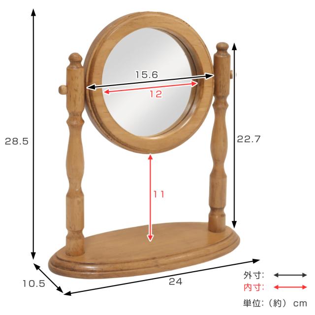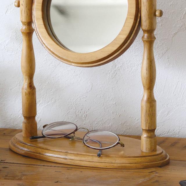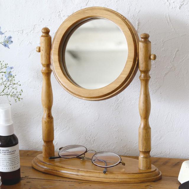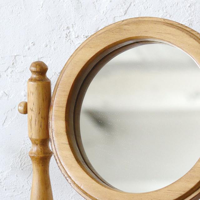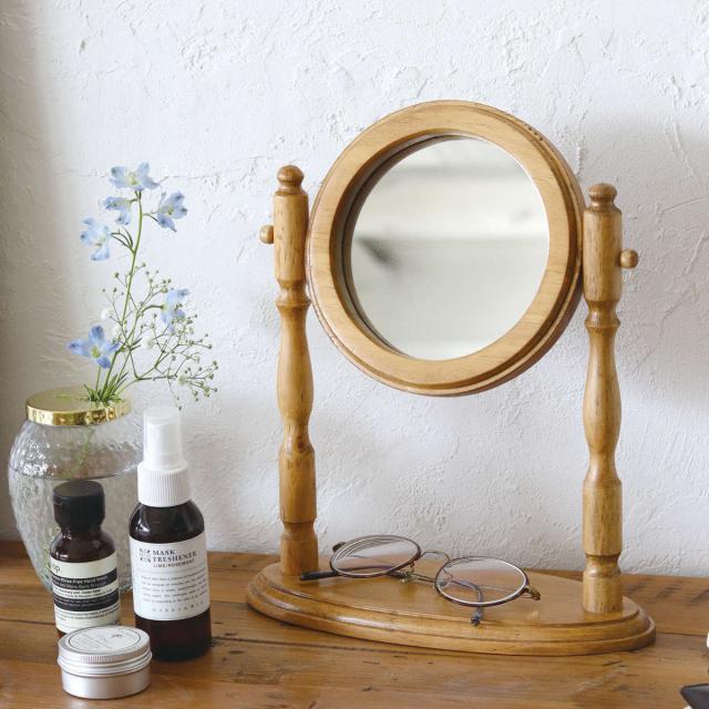 スタンドミラー ラウンド ヴィンテージ調 ナインマーケ ( 角度調整 ミラー 鏡 卓上 丸 丸ミラー 天然木 木製 アンティーク調 ナチュラル 北欧風 )