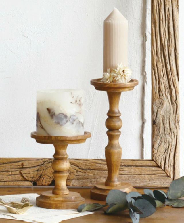 支柱部分は「木工旋盤」(木工ろくろ)で数種類の刃物を使って一つ一つ手作業で作られています。ザラつきや小傷、木目の違いなども木製品の風合いとしてお楽しみください。