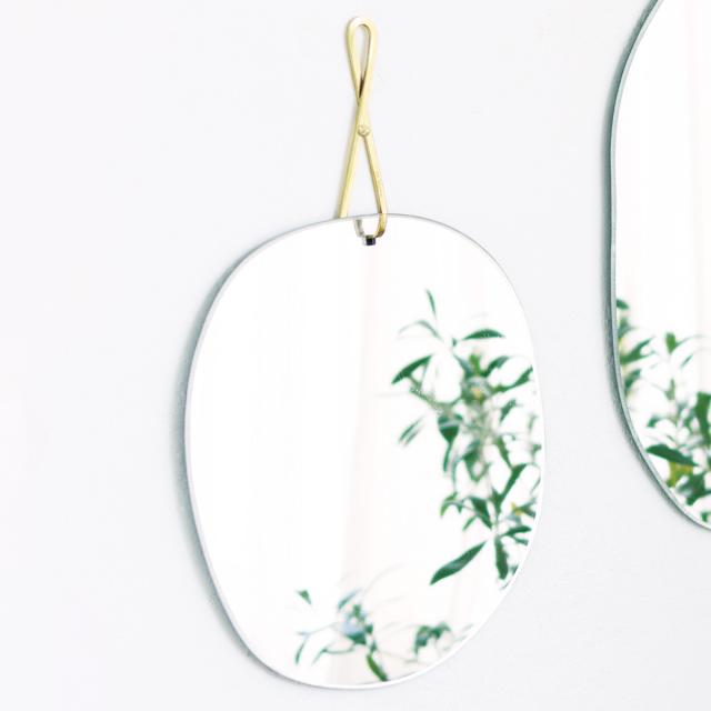 ウェーブ状のやさしいフォルムのミラーに真鍮のフックを組み合わせた、上品で落ち着いた印象のウォールミラーです。シンプルな壁紙に飾っておくだけで洗練された雰囲気を演出します。