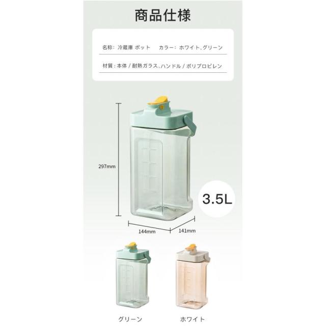 ウォーターボトル 横置き 冷蔵庫ポット 麦茶ポット ピッチャー 3.5L お茶ポット 冷水筒 水差し 耐熱 蛇口付き 安全ロック ハンドル付き 漏れない 洗いやすい