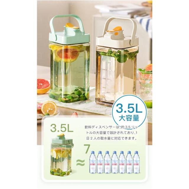 【大容量】このウォーターピッチャーは3.5Lの水を保持できます。お好みの飲み物や大きな角氷、フルーツスライスを容器に入れて、お好みの味を簡単に手に入れることができます。