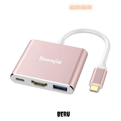 USB Type c HDMI アダプタ Tuwejia usb タイプc 4K 解像度 hdmiポート+USB 3.0ポート+USBタイプC急速PD充電ポート 3-in-1 変換 アダプタ