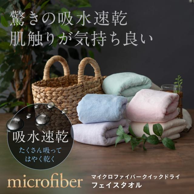 超極細繊維のマイクロファイバー生地を使用した吸水性、速乾性に優れた肌触り抜群のタオル。