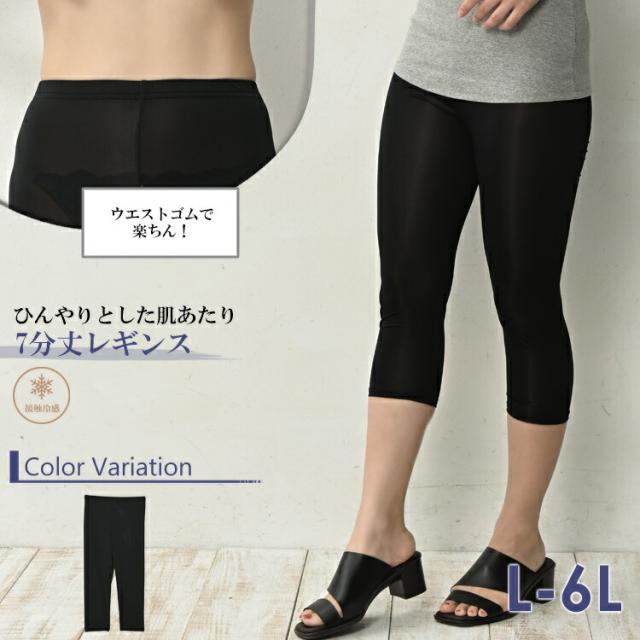 大きいサイズ レディース 冷感レギンス 7分丈 メール便対応 接触冷感 薄手 レッグウェア インナー L-LL/3L-4L/5L-6L ゆったりサイズ ぽっちゃり女子 プラスサイズ