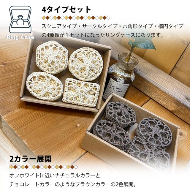 レース リングケース アクセサリーケース 指輪ケース トーション ギフト ナチュラル ブラウン 梱包資材 ラッピング プレゼント インテリア 見せ収納 リングボックス 北欧 指輪入れ リング入れ 収納ケース 収納ボックス 小物入れ 編み込み 雑貨 セット ギフト資材 オフホワイト チョコレート 茶色 指輪箱 シースルー アクセサリーボックス 店舗用品 付属品 四角 円形 サークル マリッジリングケース レディース NP-035