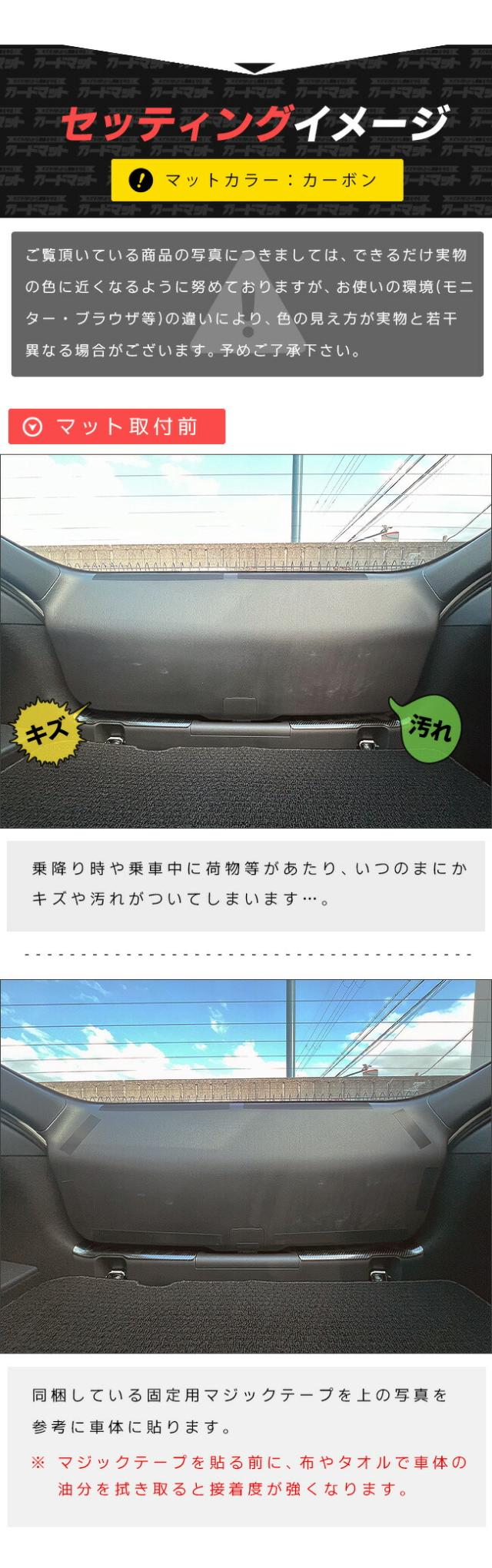 | 商品構成 | バックドアトリム用ガードマット 1枚 ※ 固定用マジックテープを同梱しております。 |