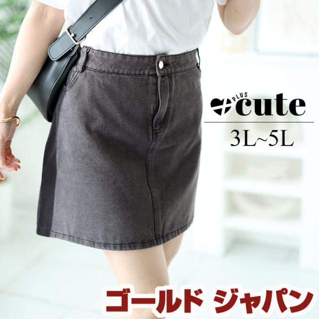 春新作 大きいサイズ レディース ボトムス スカート バイカラーデニムミニスカート ミニスカ 膝上 ファスナー 台形 ボタン デニム バイカラー 無地 韓国 春服 夏服 秋服 冬服 通年 3L 4L 5L チャコール ゴールドジャパン +cute +CUTE +Cute +cute +CUTE プラスキュート