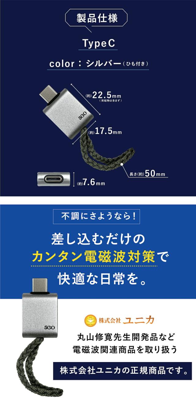電磁波 除去 カット 防止 対策 差し込むだけ 簡単 防ぐ スマホ パソコン PC 5GO ゴーゴー TypeC タイプシー 丸山修寛先生監修 電磁波 対策 グッズ ハブ コンセント電磁波除去グッズ 過敏症対策 ユニカ