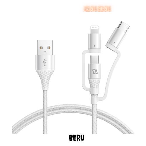 【3in1デザイン】1x USB C、1x Lightning、1x Micro USB C。 市場上のほとんどの携帯電話で充電します。 480Mbps対応データ転送