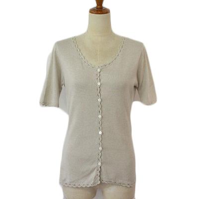 【中古】ロイスクレヨン Lois CRAYON カーディガン ニット レース 半袖 M ベージュ レディース