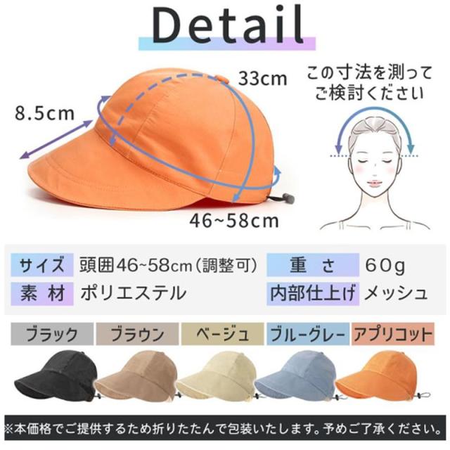 帽子 レディース キャップ UVカット 小顔効果 折りたたみ 日よけ 紫外線カット 自転車帽子 遮光100% UV対策 サイズ調整