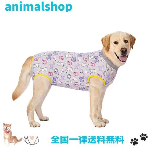 KUVEELA PET 術後服 犬服 犬術後服 術後ウェア 術後カバー服 保護服 介護服 避妊 離乳 傷口保護 皮膚病 大型犬 中型犬(グレー・リス LL