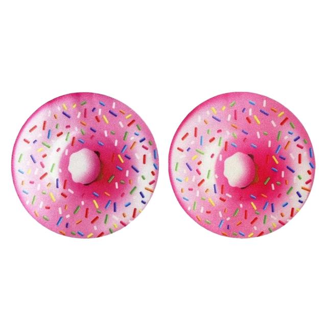 ストロベリードーナツ ニップルステッカー 1ペア ドーナッツ ピンク色 フード 食べ物 フードコート イベント 乳首シール 貼る 下着 ブラジャー ランジェリー アクセサリー メンズ レディース ベリーダンサー 社交ダンス 女子 男子 バストトップ セクシー ニップレス 水着