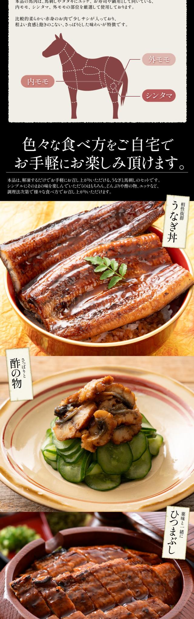 うなぎ 馬刺し セット ウナギ142g前後×1尾 赤身50g×5袋 蒲焼き 国産うなぎ うなぎの蒲焼 冷凍うなぎ 冷凍 うなぎ蒲焼 カット 赤身馬刺し 生食用 馬刺 赤身 刺身 ウナギ蒲焼き 美味しい 贈り物 ギフト プレゼント お歳暮